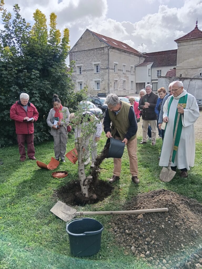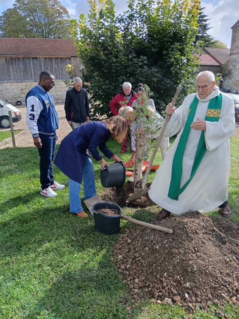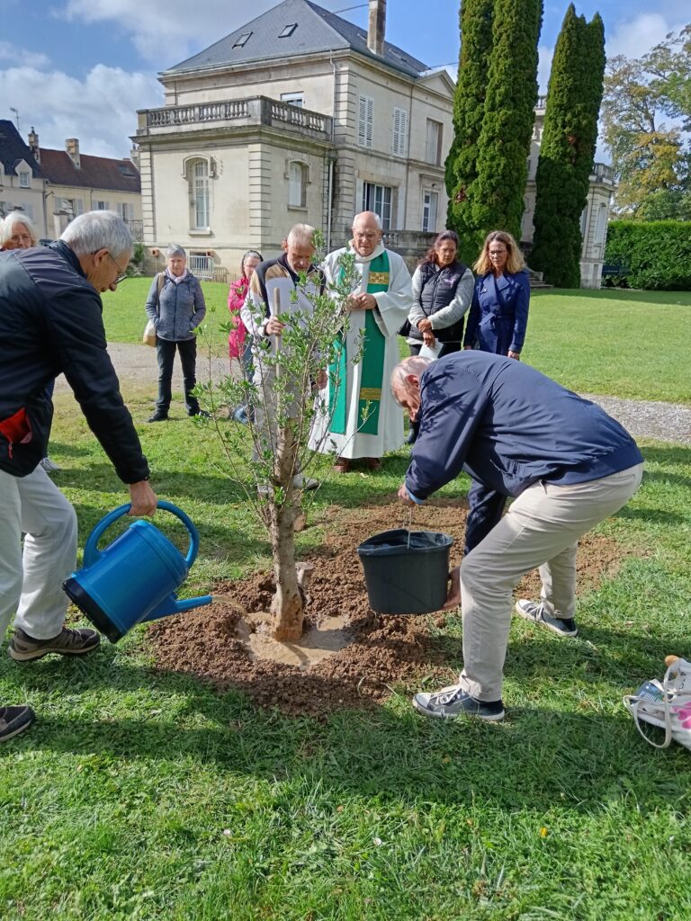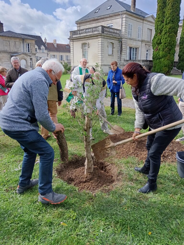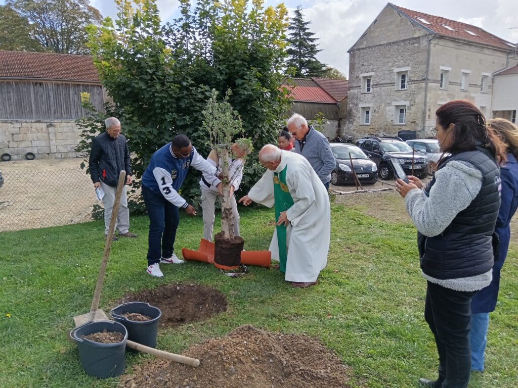 Ce dimanche 5 octobre 2025, lendemain de la commémoration de Saint François d’Assise, patron des écologistes et des animaux, la paroisse a vécu un moment de communion spirituelle et environnementale mémorable. À l’issue de la messe célébrée, le Père Bernard a dirigé une cérémonie symbolique : la plantation d’un olivier, en résonance avec l’encyclique Laudato Si’ publiée par le Pape François en 2015. Cet événement a rassemblé les paroissiens autour des valeurs chères au saint italien et au souverain pontife : le respect de la Création et l’engagement pour un monde plus durable.