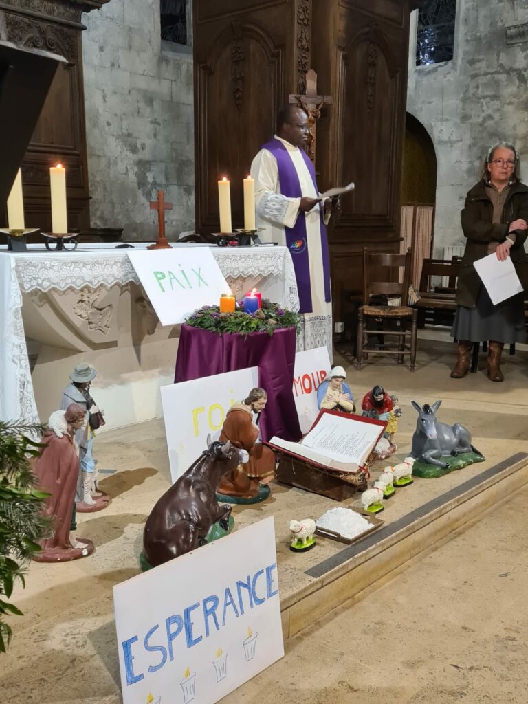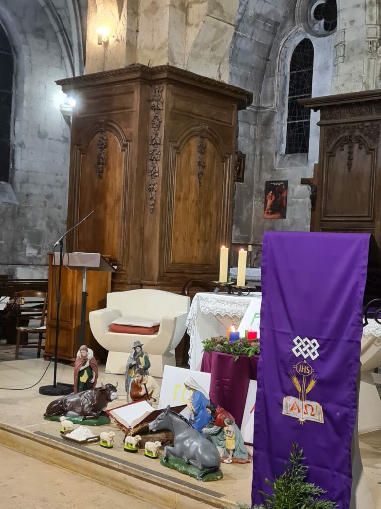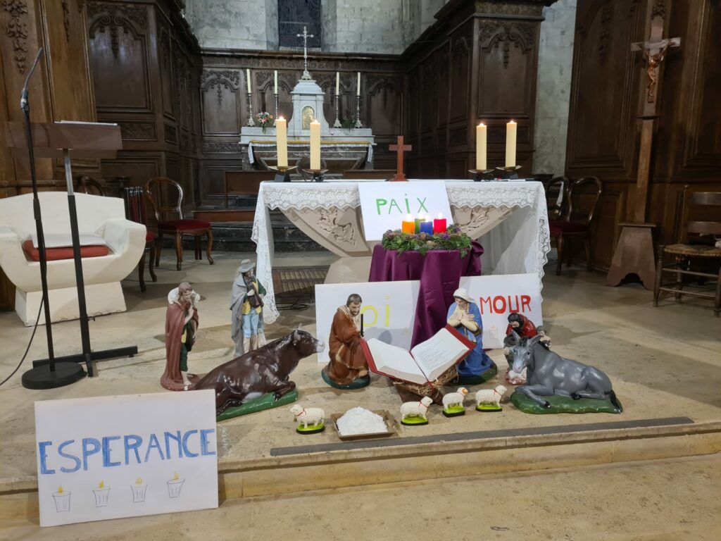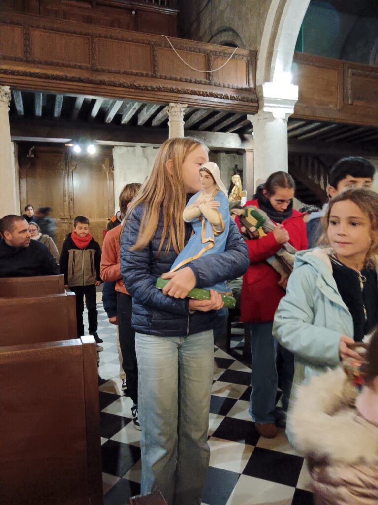 Le clou de la soirée a été l’installation de la crèche par les enfants eux-mêmes. Petit à petit, sous le regard attendri des adultes, ils ont placé Marie, Joseph, l’âne, le bœuf… et ils ont réservé la place vide pour le petit Jésus qui arrivera dans la nuit de Noël. Un moment fort en émotion !