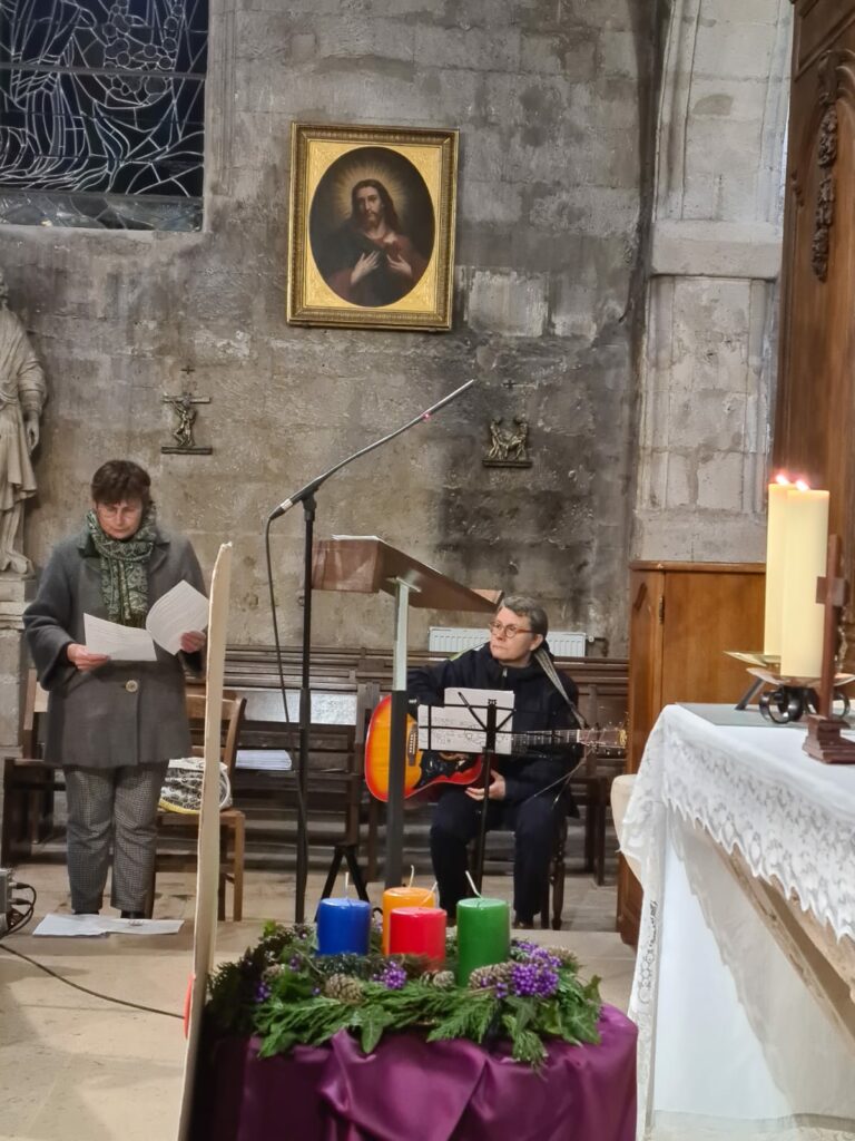 Sainte Géraldine a quant à elle accompagné toute la célébration avec de joyeux chants de l’Avent. Sa voix et son sourire ont donné une belle énergie à ce temps de prière et de partage.