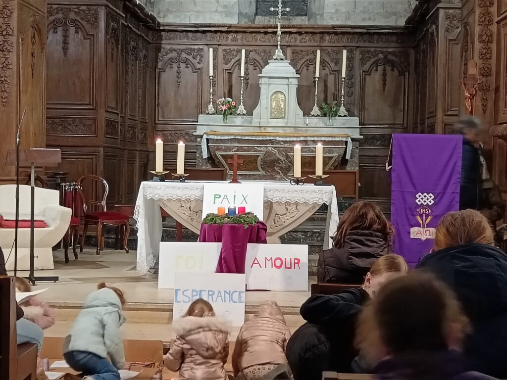 Ce vendredi 28 novembre, la paroisse a vécu un très beau moment de préparation à Noël avec les enfants du catéchisme. Autour du thème des quatre bougies de la couronne de l’Avent, ils ont été invités à entrer doucement dans ce temps si spécial qui nous conduit jusqu’à la naissance de Jésus.