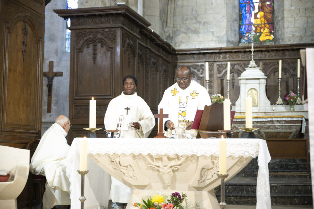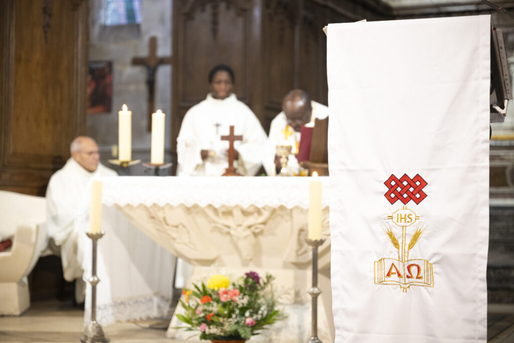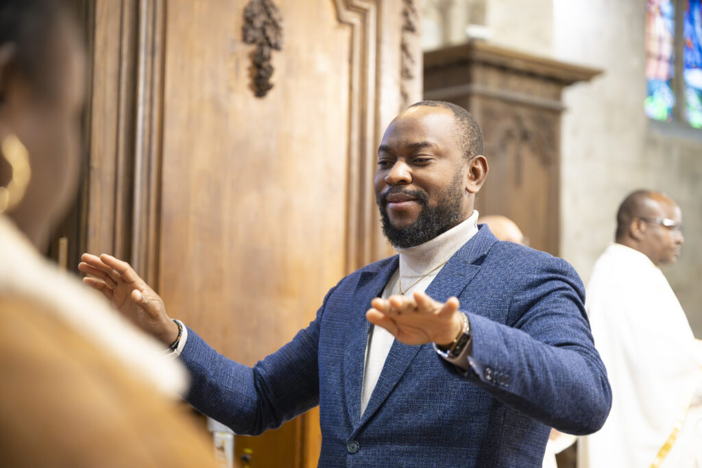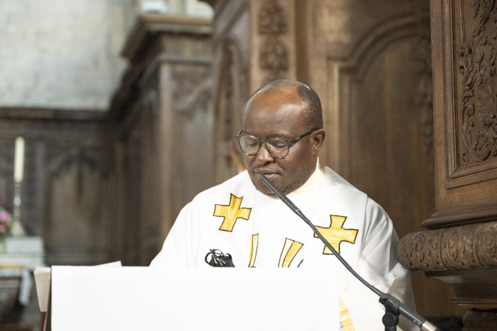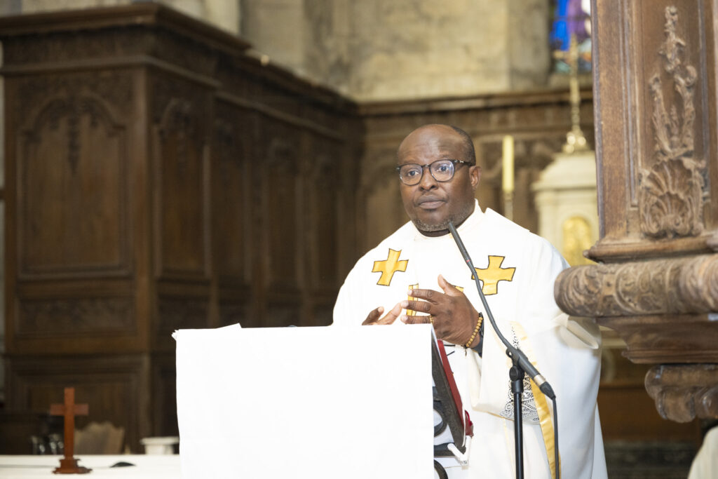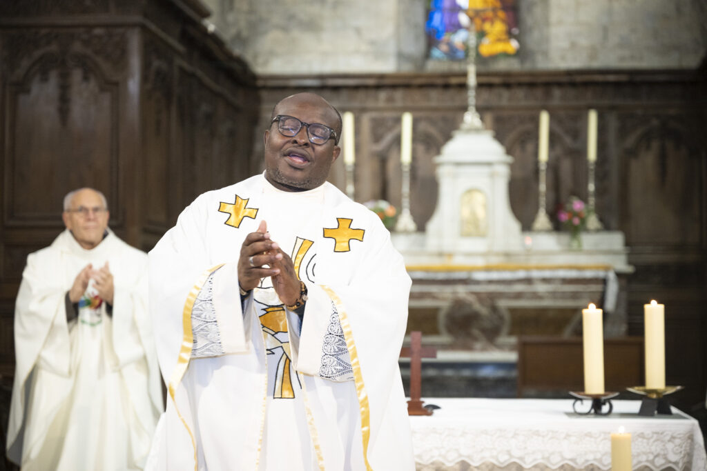 Quand le père Aimé a commencé la célébration en lingala, sa langue maternelle, la joie étincelait sur son visage, voir notre prêtre retrouver la joie profonde de célébrer dans sa langue d’origine, entouré de ses frères et sœurs congolais, a profondément touché toute l’assemblée, le sourire était présent jusqu’aux oreilles.