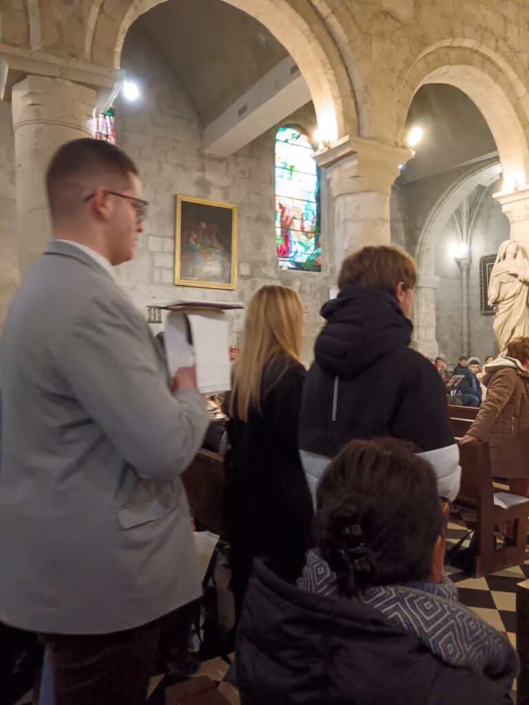 Arrivée triomphale à l’église Dès l’entrée dans l’église, la procession intérieure a continué, magnifiquement animée par notre très cher Lolo aux chants. Merci infiniment, Lolo, pour ton enthousiasme et pour l’organisation sans faille de cette journée : tu as été le chef d’orchestre de notre joie !